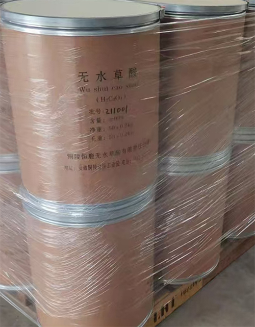 铜陵恒鹿无水草酸有限责任公司成立于2006年,是国内目前能工厂化生产、且拥有自主研发专利技术、专业生产无水草酸。草酸含量分别为:合格品:98.0%;一级品: 99.0%;优级品:99.5%和锂电池级低铁离子 (Fe3+)≤3ppm/iron-ion content≤3ppm的民营科技企业。